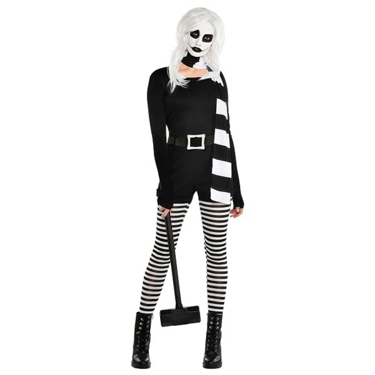 Become a crazy cool character for Halloween with this Adult Alice the Psycho costume! This costume features a jumpsuit with attached leggings and belt, scarf, and wig. Hammer prop, boots, and makeup not included. Small fits 2 – 4, Medium fits sizes 6 – 8, Large fits sizes 10 – 12, X-Large fits sizes 14 – 16 and Plus fits 18 – 20.