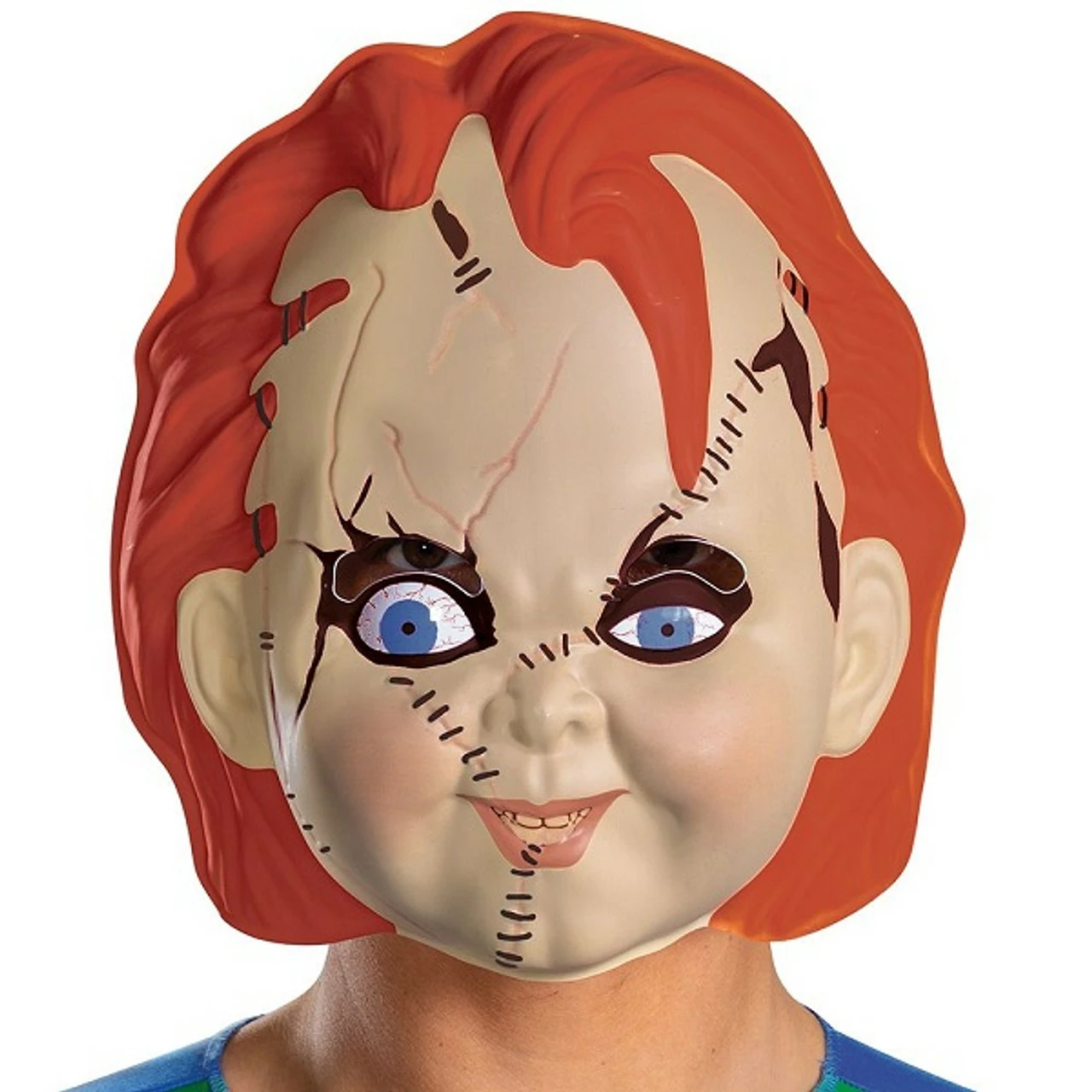 Complete your possessed serial killer doll from ChildÂ’s Play costume with this Adult Chucky Mask! This colorful plastic full face mask features an attached elastic string. One size fits most.