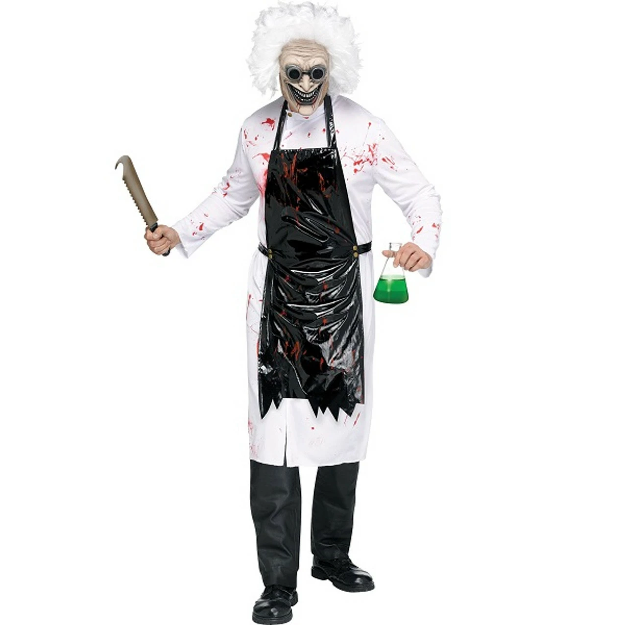 Create an experiment in fear when you wear this Adult Mad Scientist costume! This costume features a lab coat, apron, and mask with hair. Pants, shoes, and props not included. One size fits most up to 6ft, 200lbs.