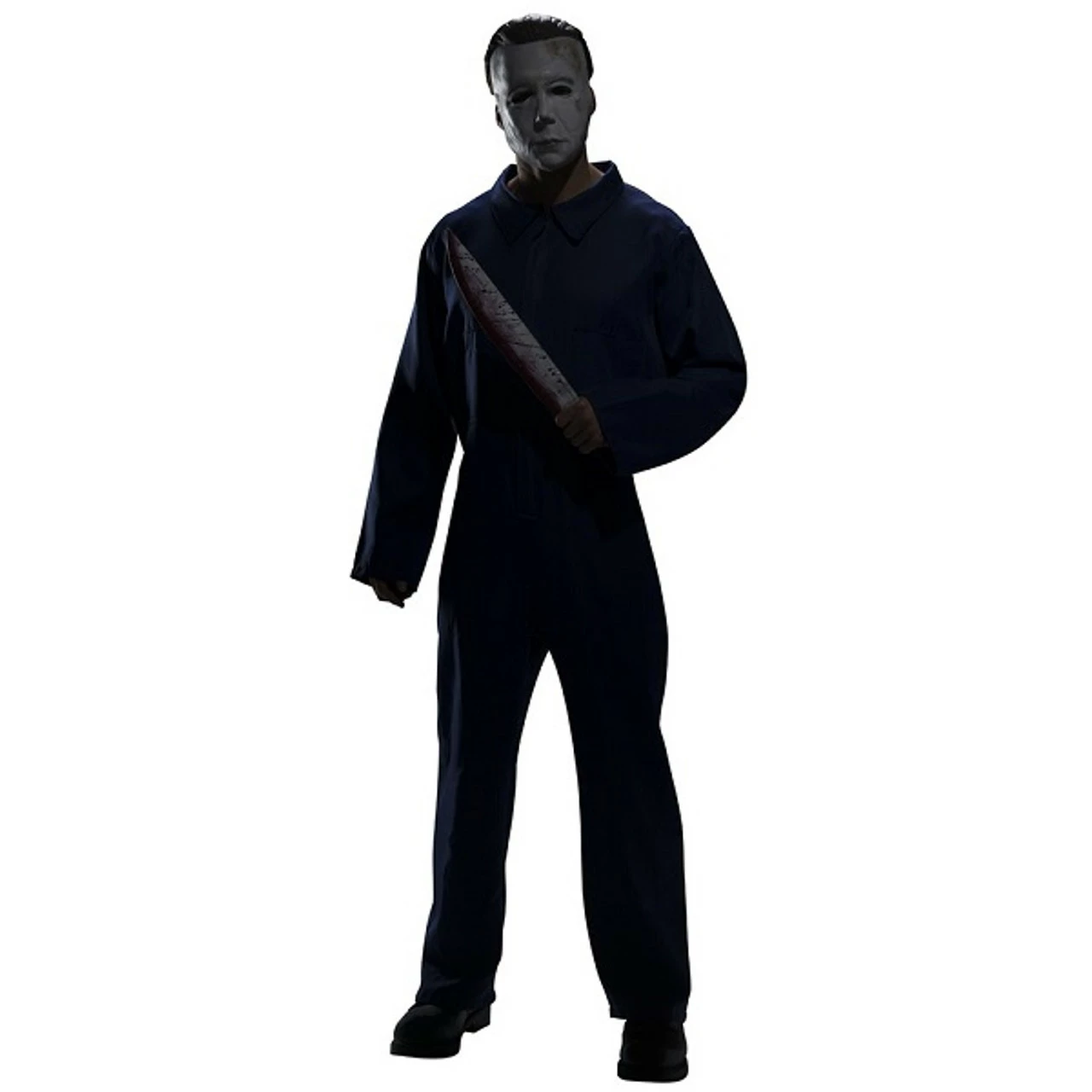 Turn yourself into a classic psycho killer for Halloween with this Adult Michael Myers costume! This costume features the signature navy blue jumpsuit and mask. Toy knife prop and shoes not included. X-Small fits 34 36in chest, Standard fits 42 46in chest, and X-Large fits 46 50in chest.