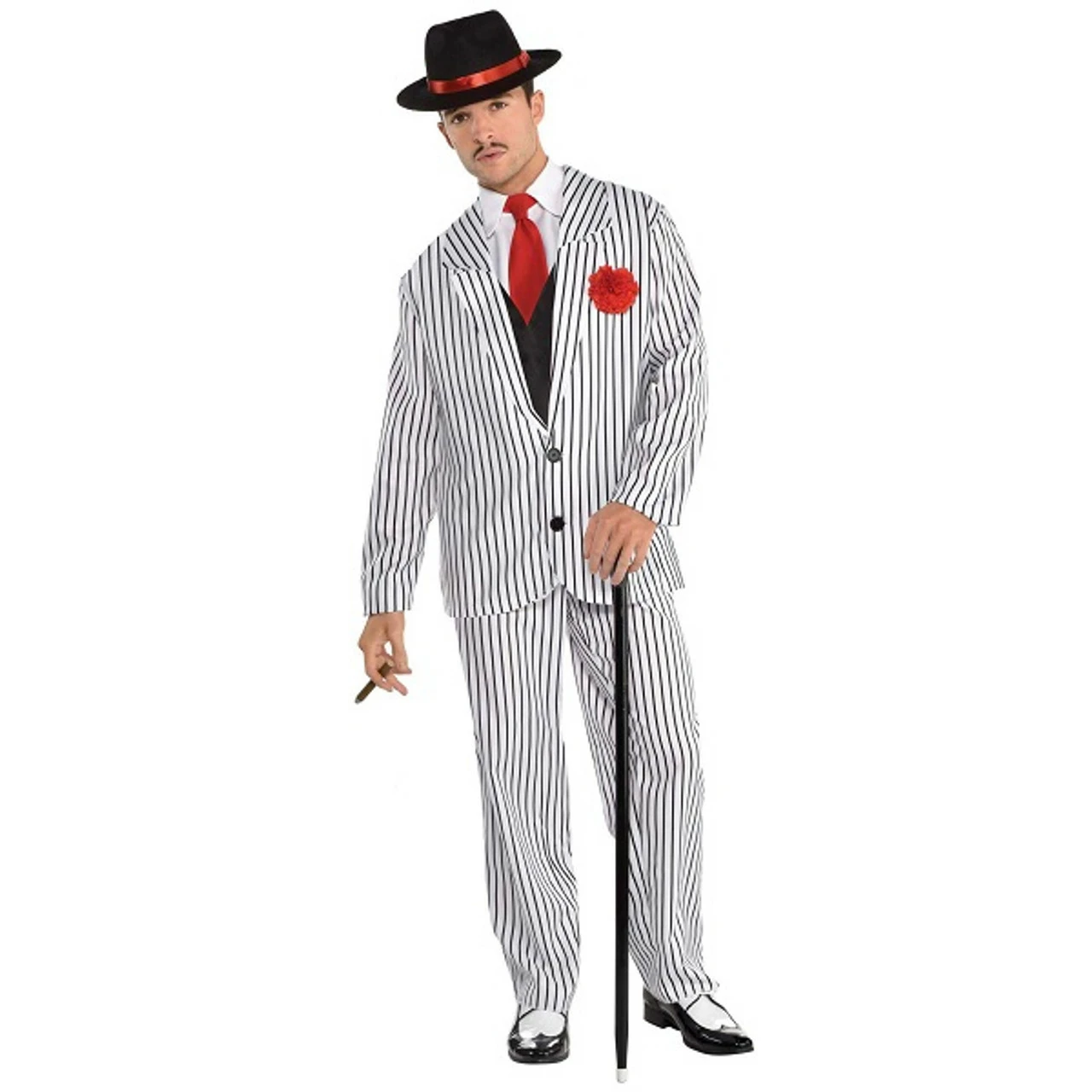 YouÂ’re sure to look like a fancy boss from the 20Â’s in this Big Gangsta costume! This costume features a jacket, hat, faux shirt, carnation, and pants. Props and shoes not included. Adult Standard fits up to chest size 42.