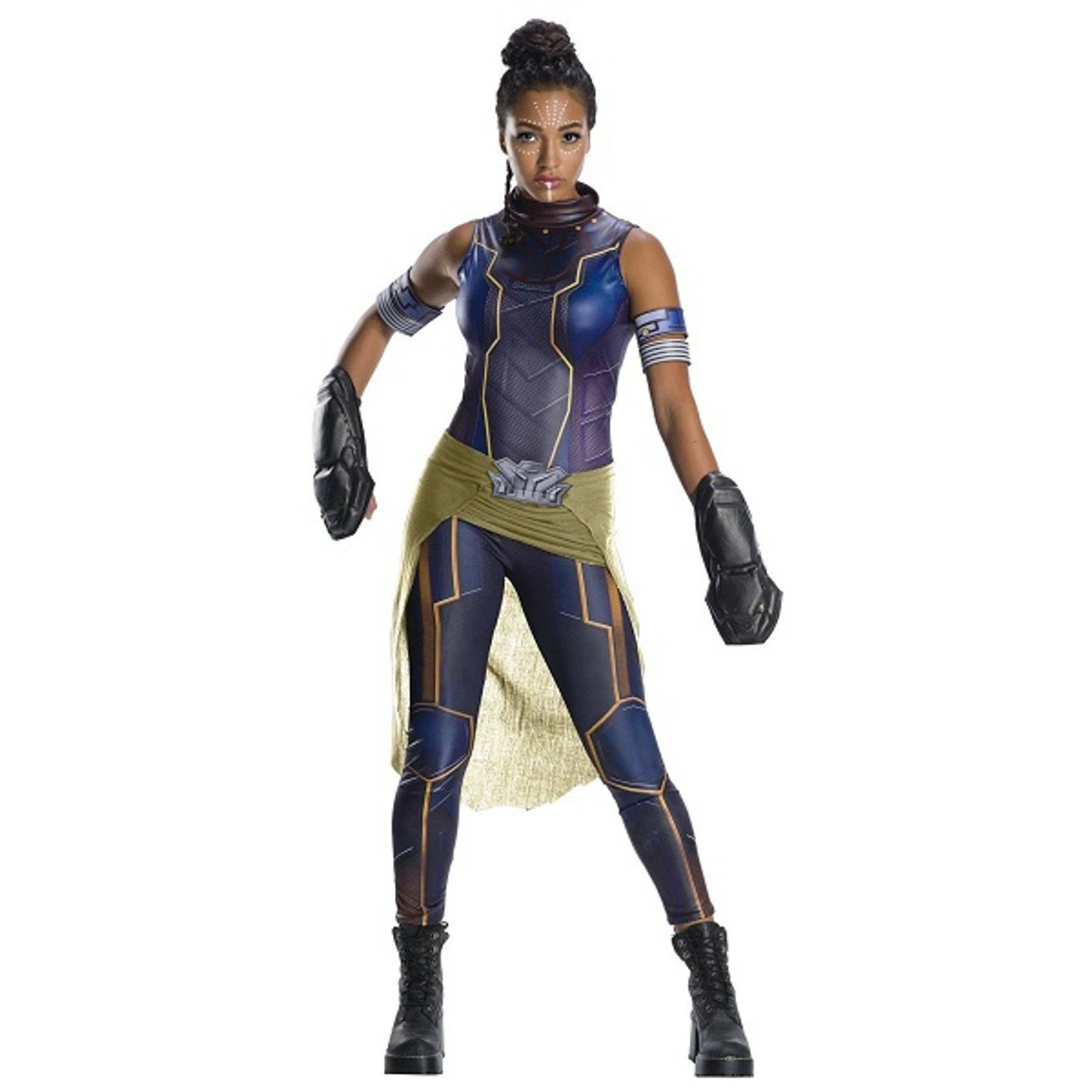 You don’t have to be a sci-fi level engineer to wear this Black Panther Shuri costume for Halloween! Includes character jumpsuit, sarong with buckle, armbands, and battle gauntlets. Boots and face jewels not included. XS (0 – 2) SM (2 – 6) M (6 – 10) L (10 – 14)