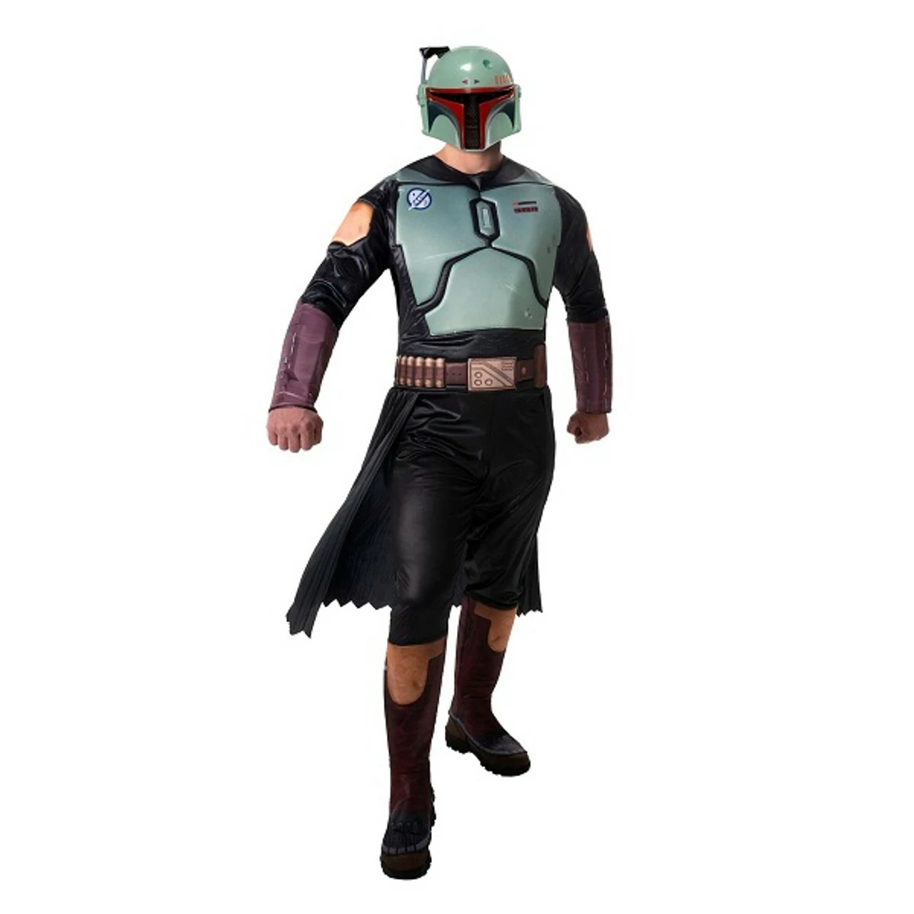 Become the bounty hunter that rode a Rancor when you wear this Boba Fett costume! This costume features a padded printed jumpsuit with attached boot covers, an attached cape, and molded plastic mask. Shoes not included. X-Large fits size 36 – 38.