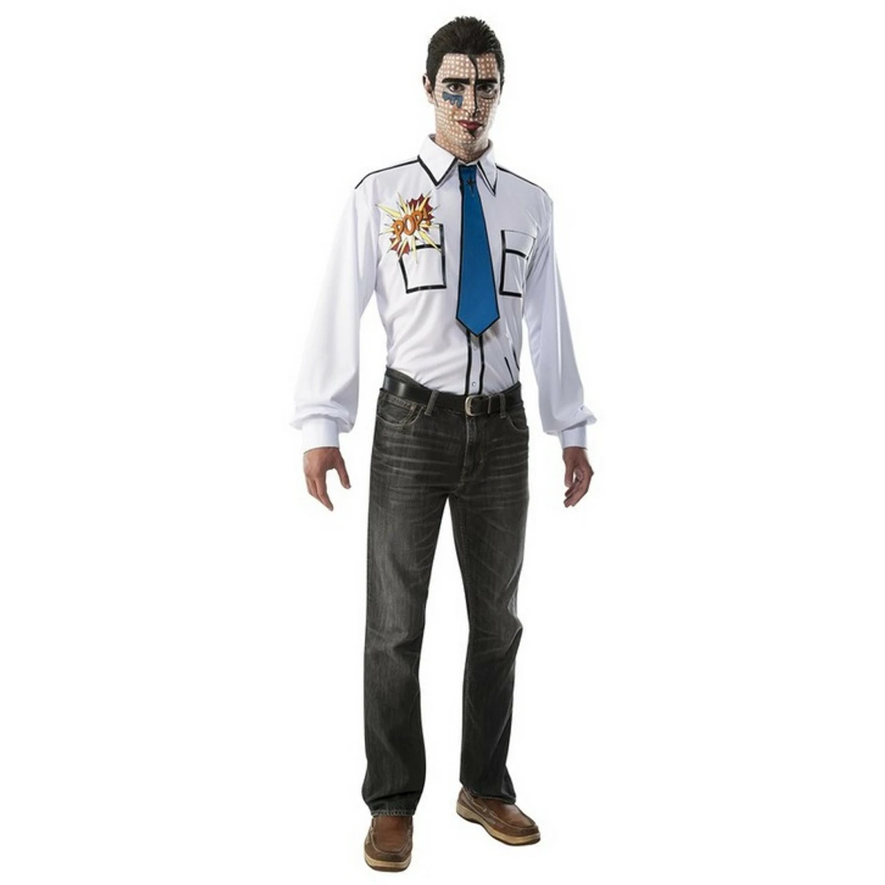 Become the legendary detective in a snap with this Comic Dick costume! Includes white printed shirt and make-up kit. Shoes and pants not included. Pair with coordinating Comic Tracy for a great couple’s costume!