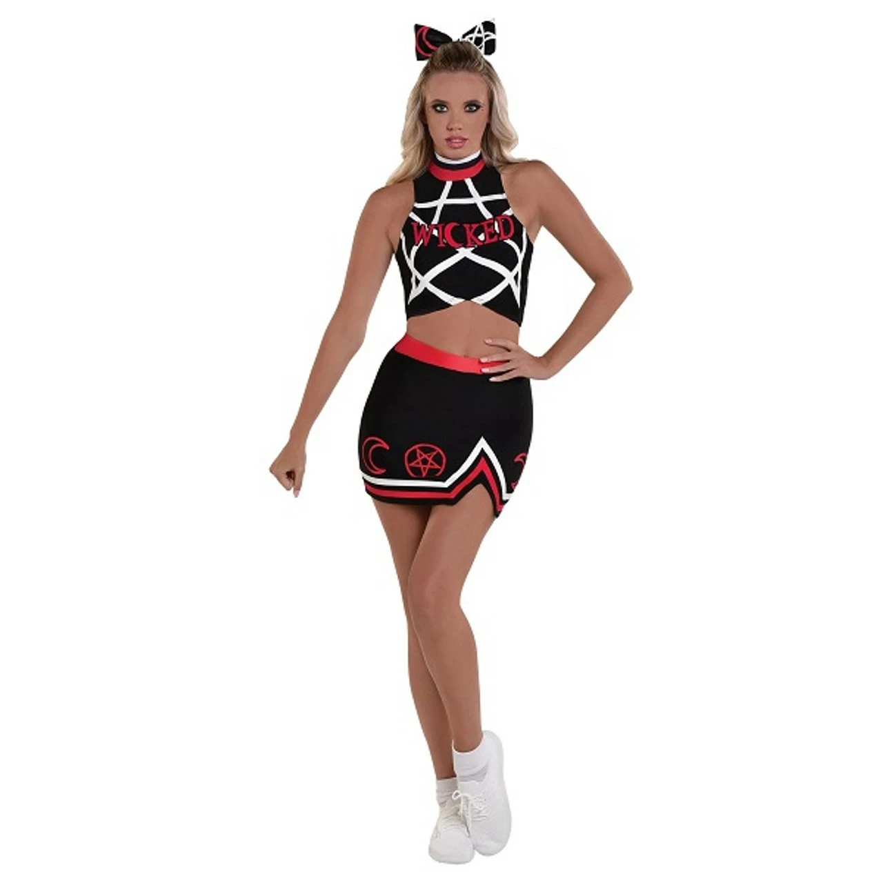 Summon the cheer devil with this Evil Spirit costume! This costume features a top, skirt, and matching hair bow. Shoes not included. Small fits 2 – 4, Medium fits 6 – 8, Large fits 10 – 12, and X-Large fits 14 – 16.
