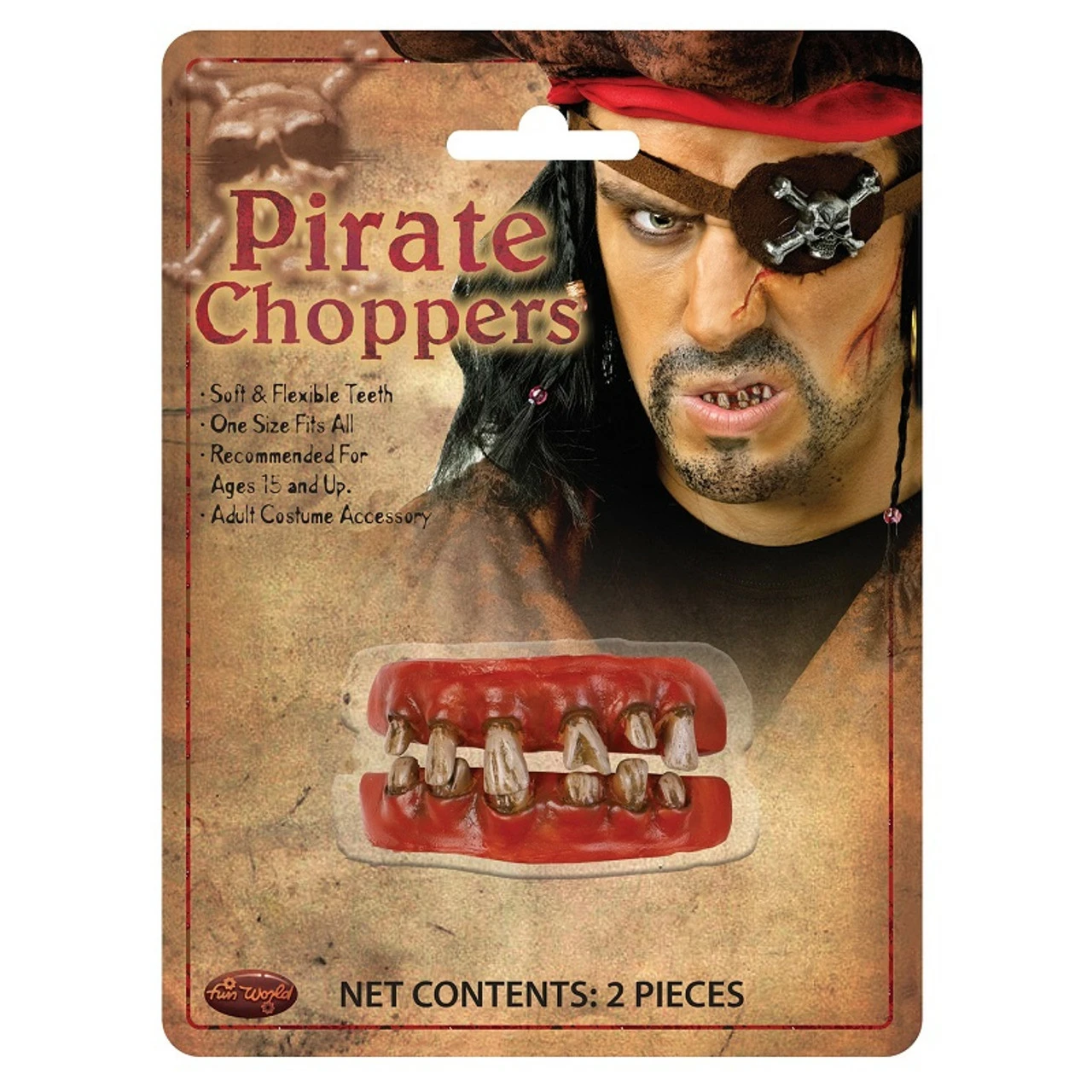 Complete your pirate look with these Pirate Teeth! These soft and flexible upper and lower teeth feature missing and rotted teeth and gums. One size fits most.