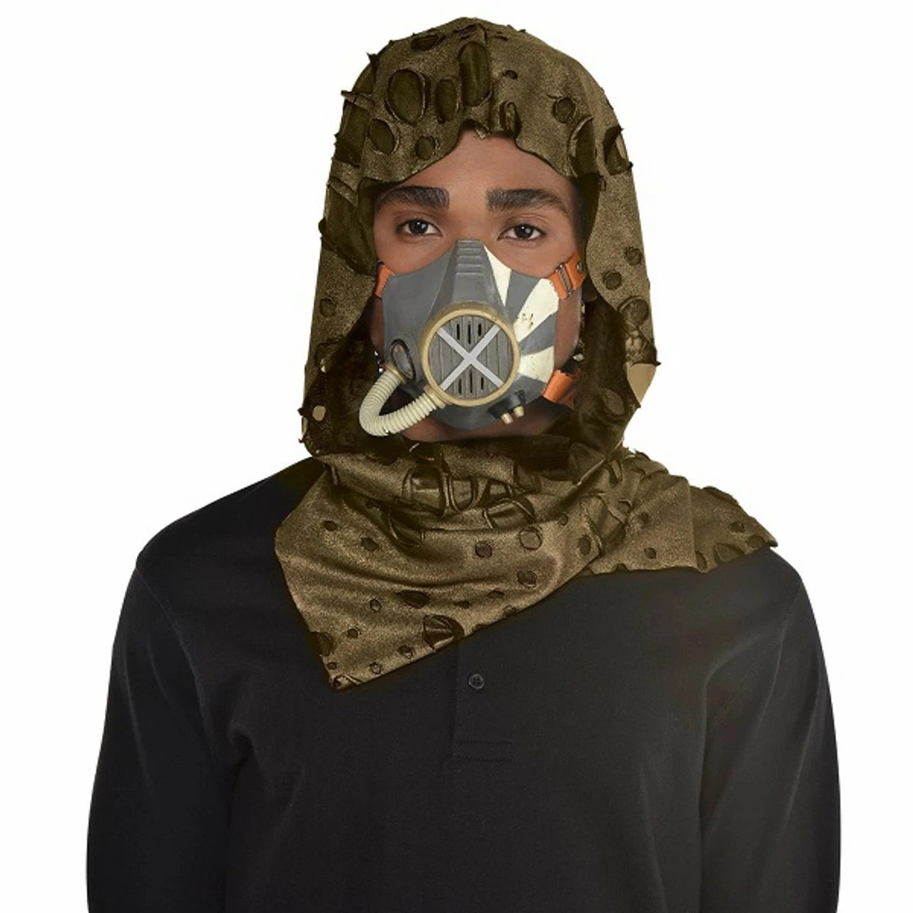 You’ll look ready for a scene in Mad Max when you wear this Post Apocalyptic Gas Mask! This plastic half mask features orange straps and breathing tube with an attached fabric cowl. One size fits most adults and teens. Shirt not included.Â