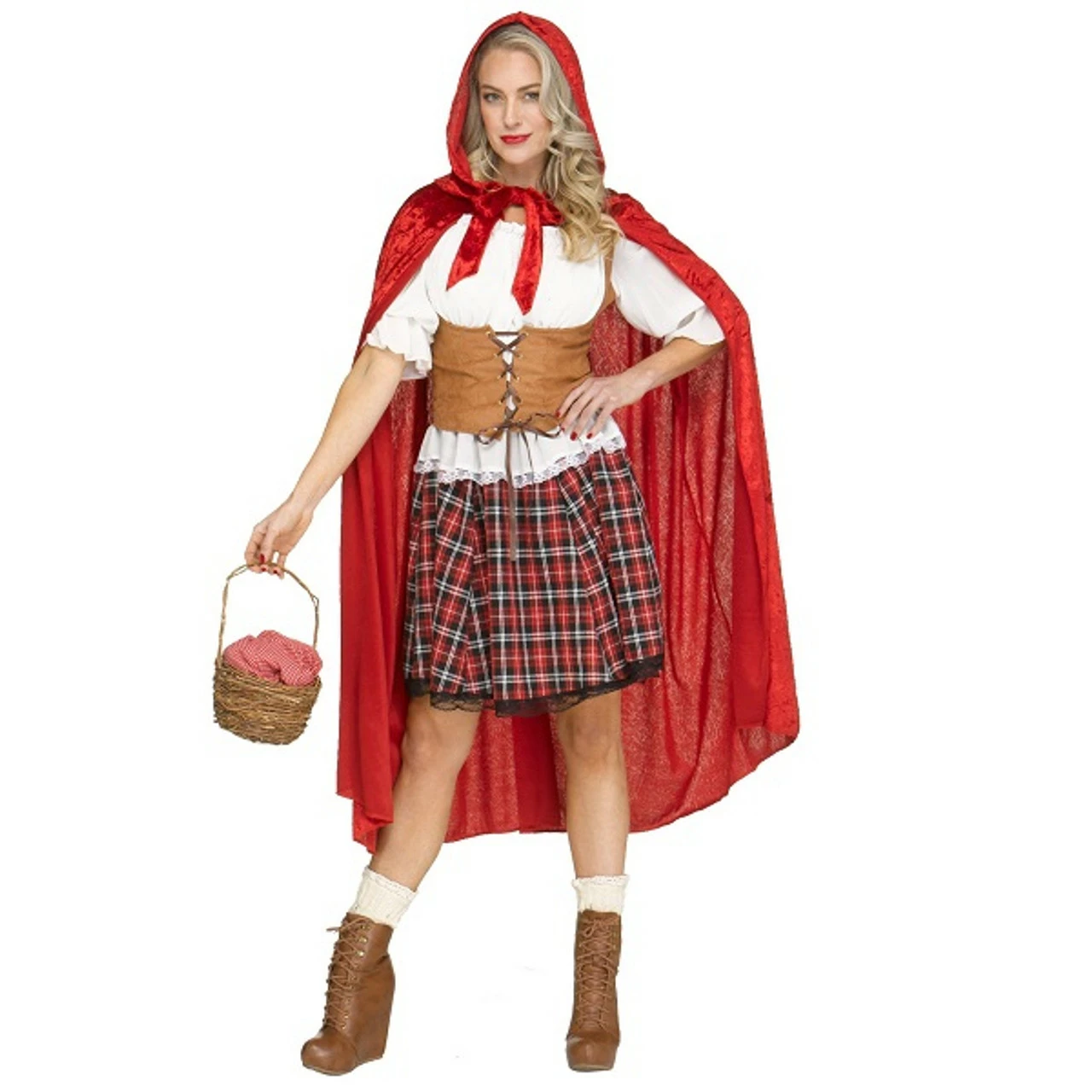Get ready to take on the big bad wolf in this Red Riding Hood costume! This costume features a dress and hooded cape. Socks, boots, and basket prop not included. Small/Medium fits women’s sizes 2 – 8 and Medium/Large fits 10 – 14.