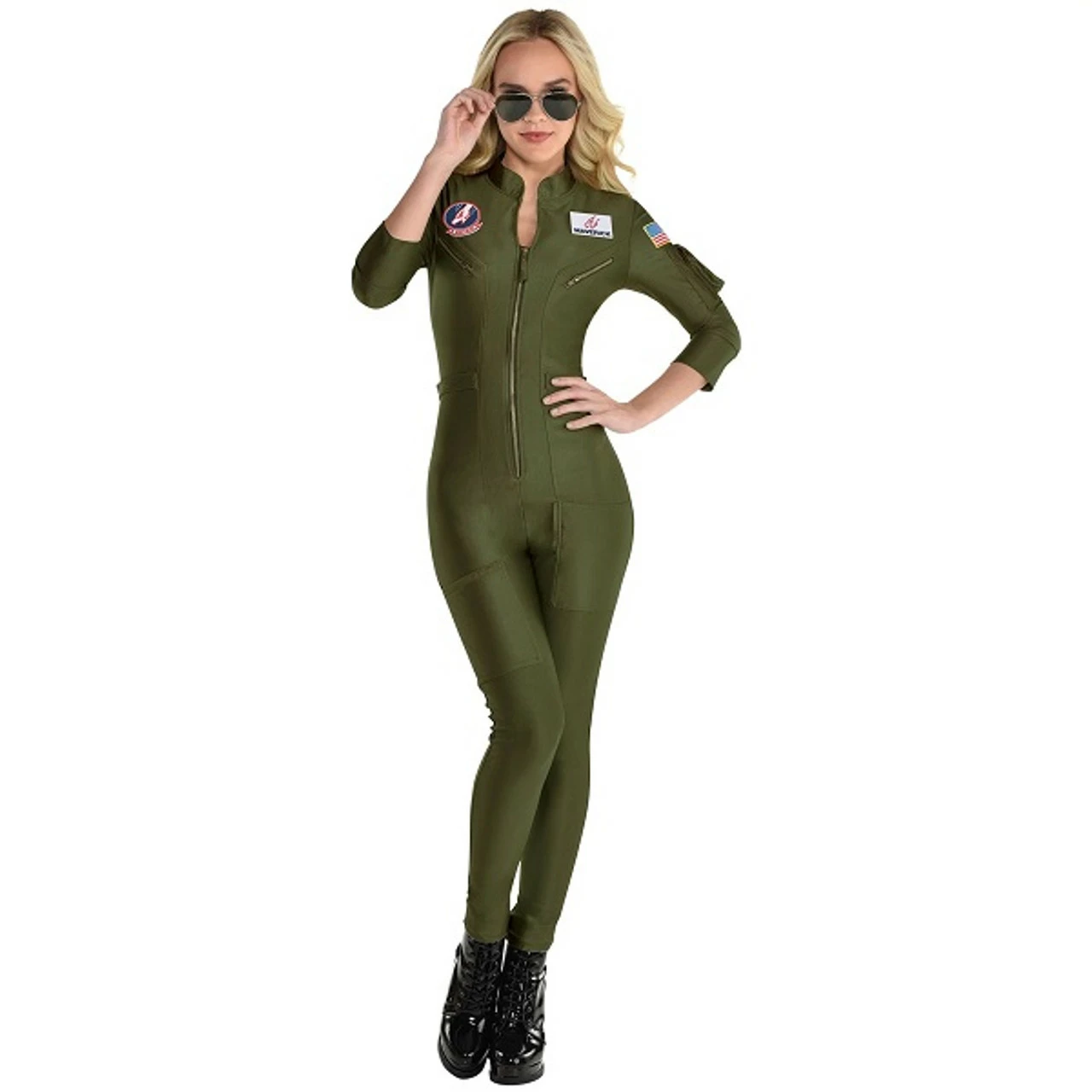 Become a pilot for Halloween with this Top Gun Maverick Flight Lady costume! This costume features a catsuit and interchangeable patches. Shoes and sunglasses not included. Small fits sizes 2 – 4, Medium fits 6 – 8, Large fits 10 – 12, X-Large fits 14 – 16, and Plus fits 18 – 20.