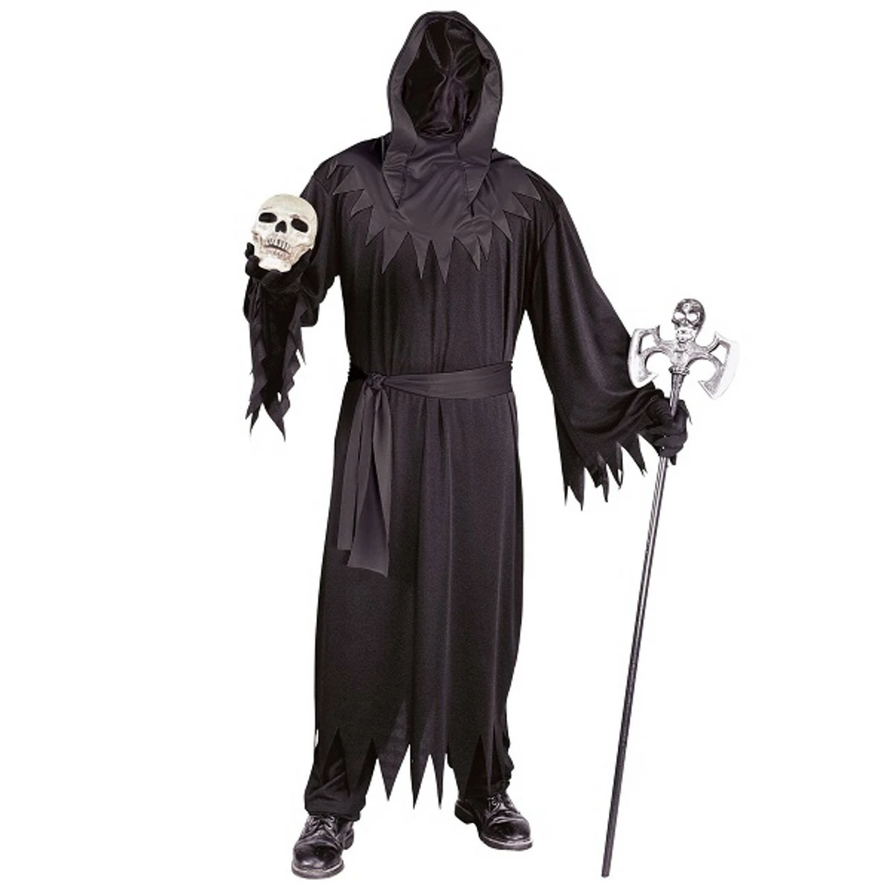 Transform into a garish ghoul for Halloween with this Unknown Phantom costume! This costume features a black robe, hooded mask, and belt. Props and boots not included. One size fits most up to 6ft, 200lbs.