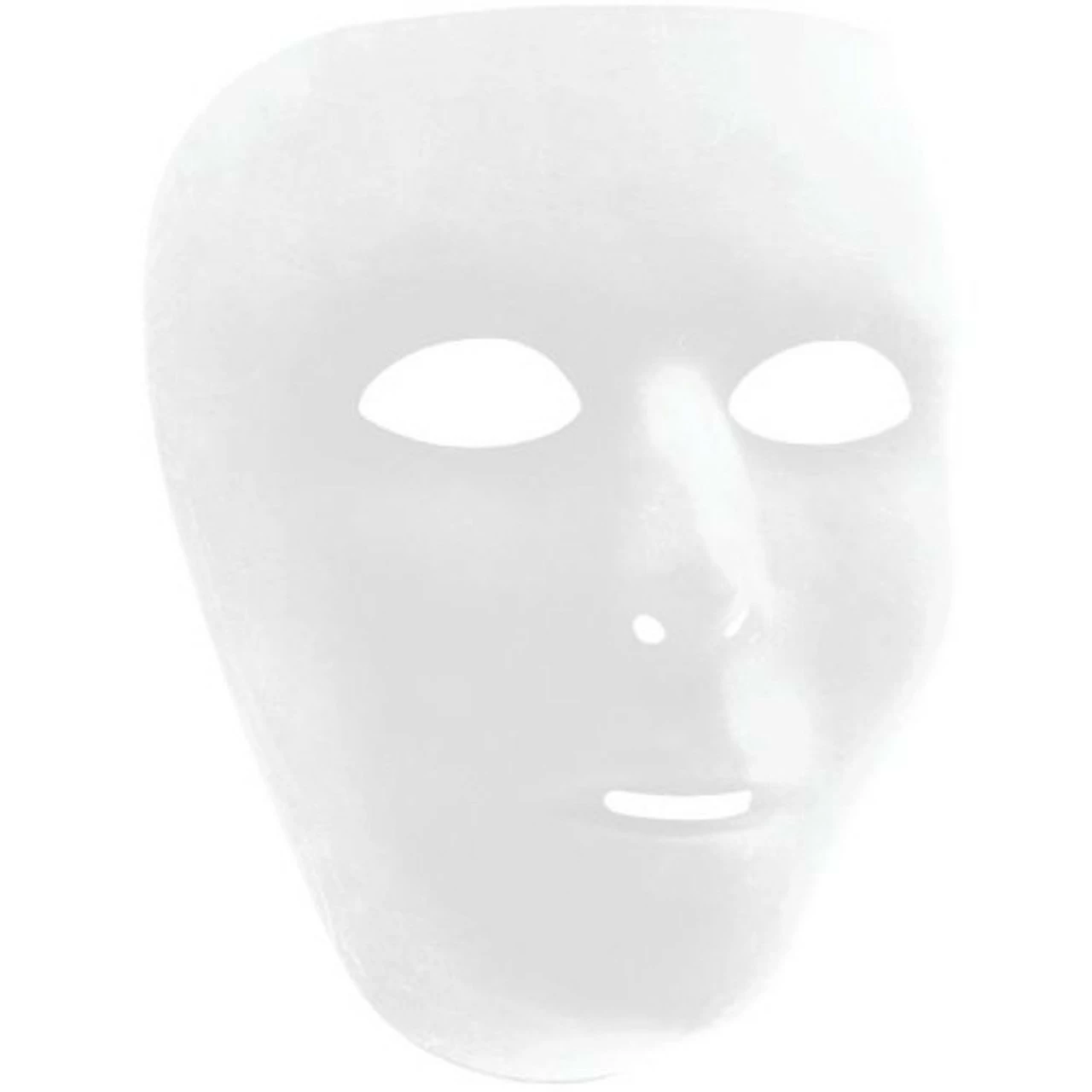 Make a bold statement on game day with this White Full Face Mask! This molded plastic mask features full face coverage with eye and mouth holes! Mask measures 6.25in x 7.75in.